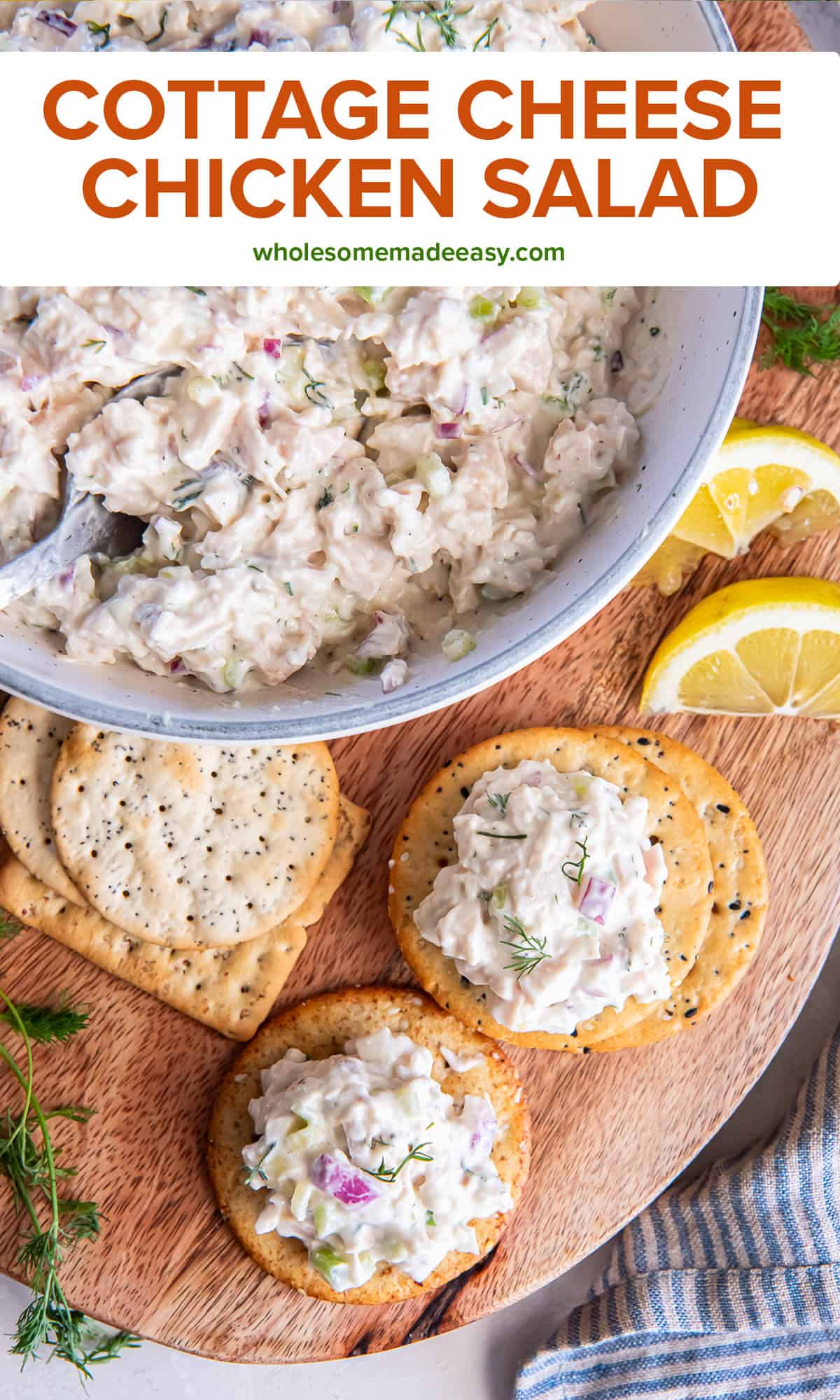 - Fresh dill: Fresh dill adds fresh, classic chicken salad flavor that works really well with the lemon and cottage cheese. If you don’t have fresh dill, you can substitute about 1 to 2 teaspoons dried dill.